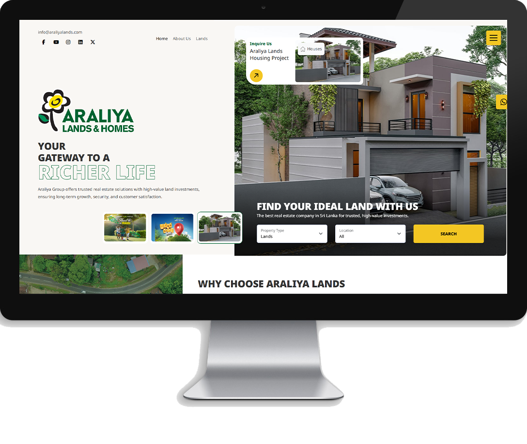 A trusted name in Sri Lanka’s real estate industry, Araliya Lands & Homes is dedicated to helping people achieve their dream of land ownership. Recognizing this vision, TekGeeks developed a user-friendly and visually engaging website to support Araliya’s clients throughout their property journey. The platform also enables users to explore available lands and conveniently sell their own properties online.