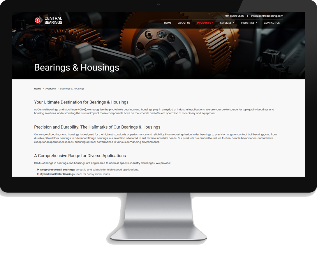 Central Bearings & Machinery, a leading supplier of industrial bearings and engineering solutions in Sri Lanka, entrusted TekGeeks to elevate their digital presence. We designed and developed a robust, user-centric website that showcases their extensive product range. The site features intuitive navigation, detailed product and service pages, and industry-specific solutions, ensuring clients can easily find the information they need. Optimized for performance and accessibility, the site reflects Central Bearings & Machinery’s commitment to innovation, reliability, and customer service across diverse industrial sectors.