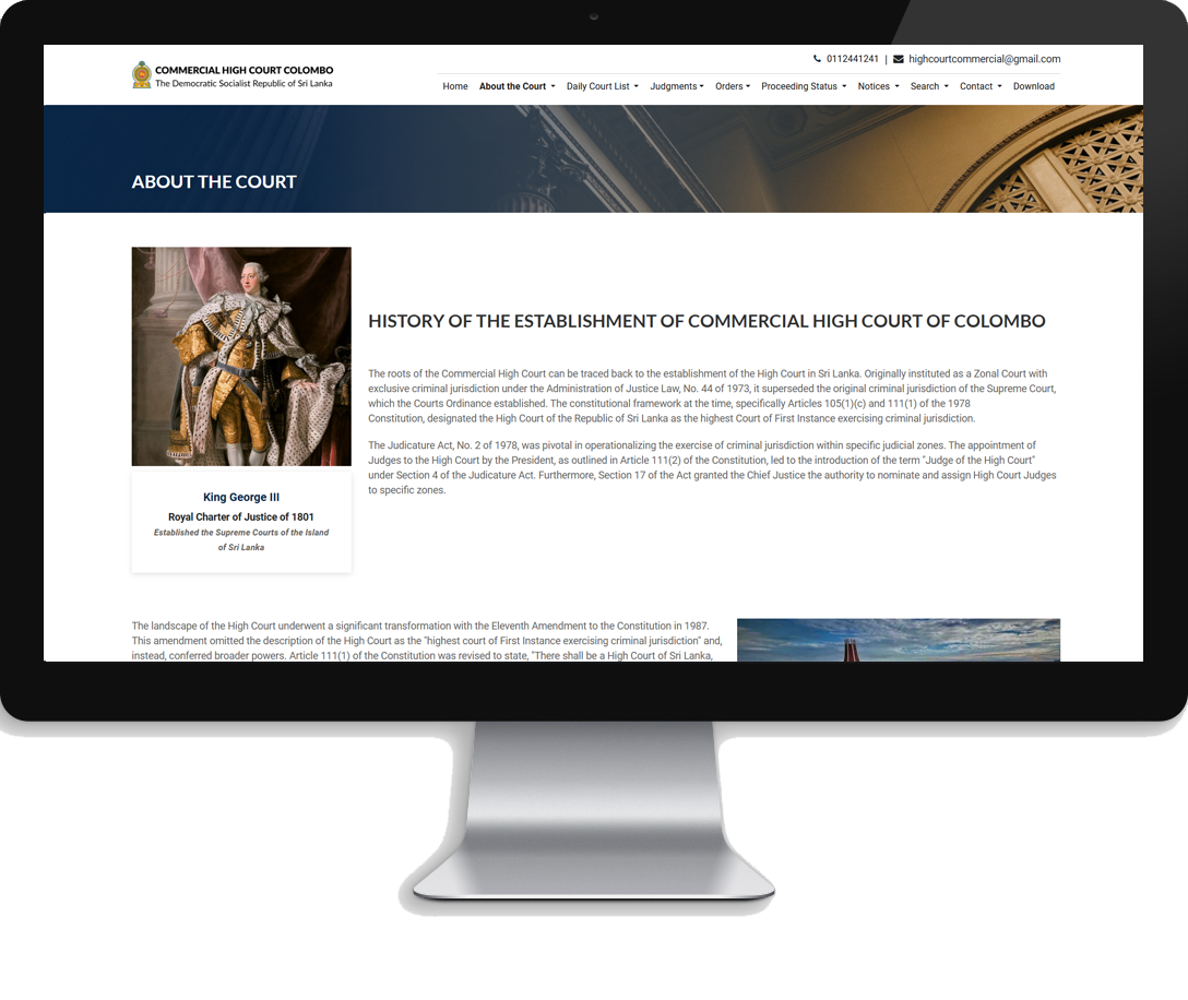 TekGeeks worked with the Commercial High Court of Colombo to develop a modern, accessible web platform that streamlines access to legal resources and information. Funded by UNDP's JURE, the site was designed to support the Court’s mission of facilitating commercial dispute resolution, featuring intuitive navigation for daily court lists, judgments, orders, and proceeding statuses. Comprehensive resource sections and a responsive design ensure that legal professionals and the public can efficiently access vital information. This digital transformation enhances transparency and accessibility, reflecting the evolving needs of Sri Lanka’s legal and business communities.