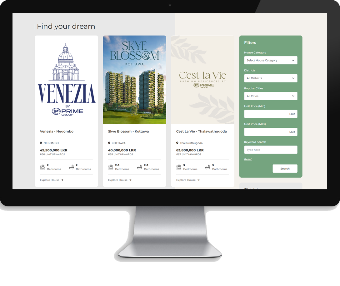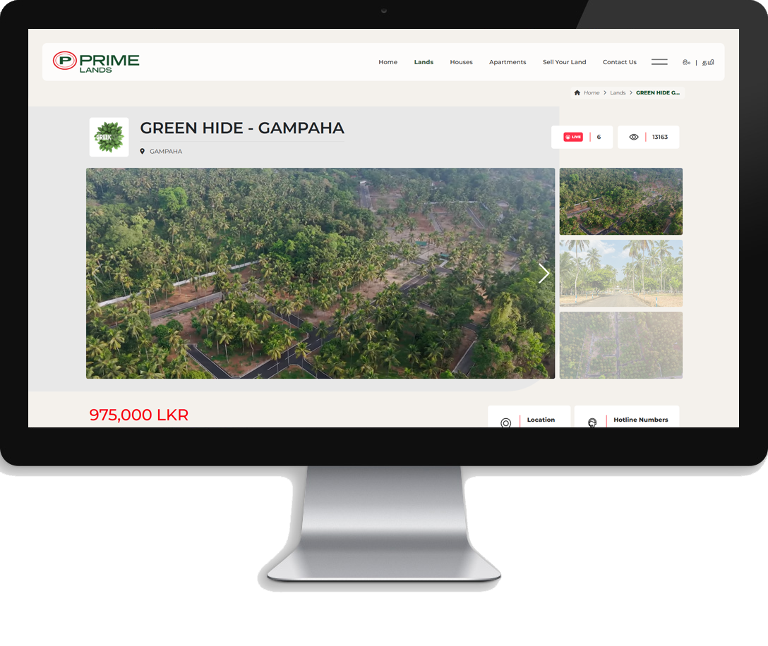 Prime Lands Residencies is built by Sri Lankans for Sri Lankans, giving life to the aspirations of their customers by providing complete real-estate solutions. A website that describes their services and allows consumers to look around and learn previous, current, and future condo developments of Prime Lands Residencies.