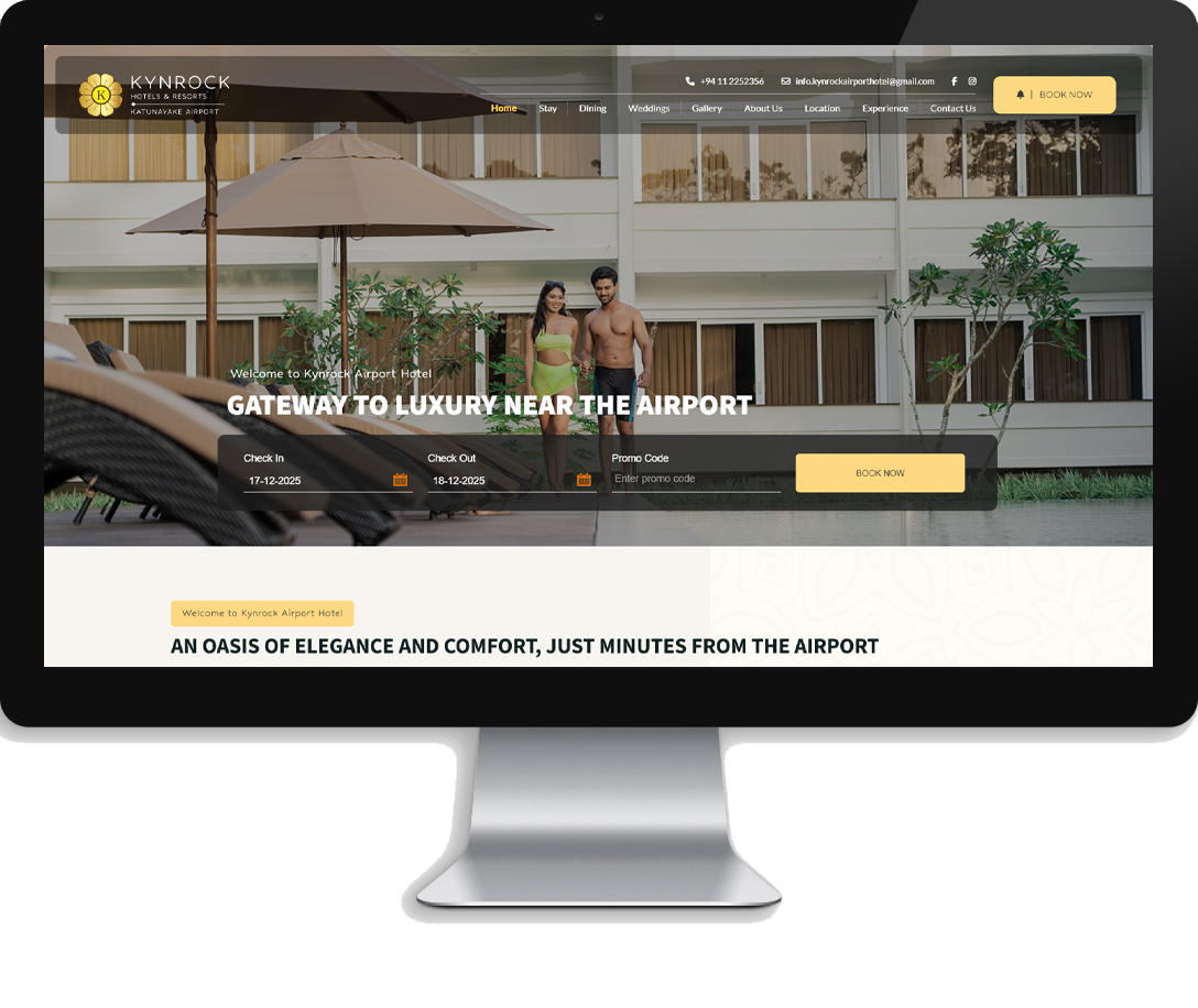 Kynrock Airport Hotel partnered with TekGeeks to build a modern website that reflects their luxury hospitality just minutes from Bandaranaike International Airport. The new site showcases their room options, dining experiences, and event spaces, while offering an integrated booking system with promo code support. Designed with smooth navigation and rich visuals, it helps guests explore hotel services, nearby attractions, and plan the perfect stay with ease.