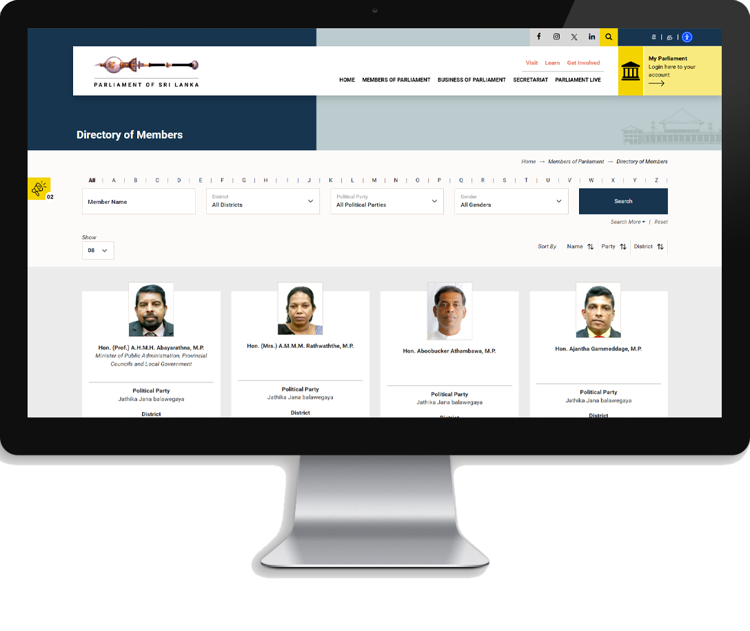The Parliament of Sri Lanka website revamp was built to create a more accessible, citizen-focused digital experience that supports transparency and open governance. Designed with a modern, mobile-friendly interface, the new platform makes it easier for users to explore key parliamentary information such as Acts and Bills, members and committees, parliamentary news, live updates, and public resources. With a powerful CMS and streamlined content workflows, the Parliament team can manage and publish content independently in English, Sinhala, and Tamil, ensuring timely updates and a consistent experience for audiences across Sri Lanka.